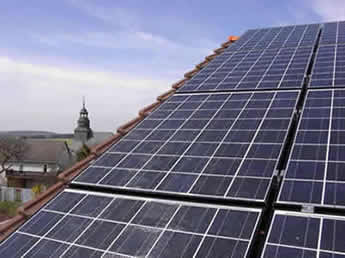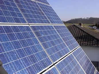Die Stromgewinnung aus Sonnenlicht erfolgt mit Hilfe von Solarzellen.